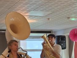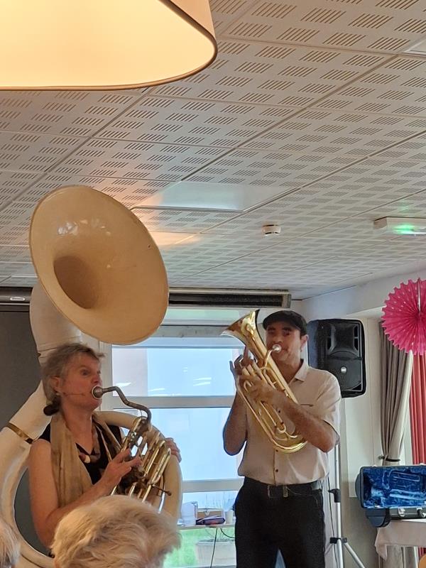 Ce mois-ci, c’est le Duo Court Toujours qui nous a fait l’honneur de venir animer cette célébration ! Leur énergie communicative et leurs instruments variés nous ont garanti un après-midi dynamique et plein de bonne humeur.