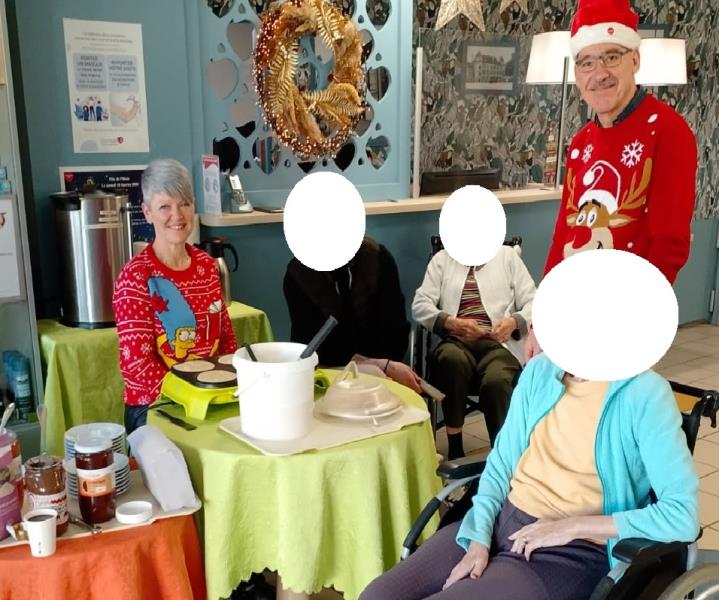 Le samedi 13 décembre 2025 a eu lieu la quatrième édition de notre Marché de Noël à la résidence. Cinq artisans étaient au rendez-vous pour présenter leurs créations. Résidents et familles ont pu découvrir les étals, échanger avec les exposants et faire leurs achats dans une ambiance chaleureuse. Bien sûr, la délicieuse odeur des crêpes et du vin chaud a rencontré un grand succès et a ravi petits et grands.