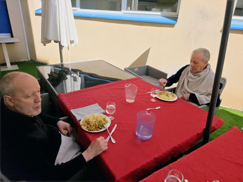 De retour à l’accueil de jour, nous avons souhaité prolonger ce moment agréable en prenant notre repas en terrasse, dans notre jardin.